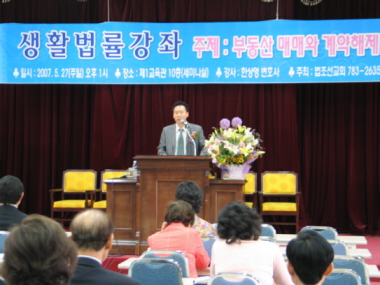 5¿ù 27ÀÏ Á¦1±³À°°ü ¼¼¹Ì³ª½Ç¼ (»ç)¼øº¹À½½Ç¾÷Àμ±±³¿¬ÇÕȸ ¹ýÁ¶¼±±³È¸(±è±¤ÀÇ Àå·Î)°¡ Áö³´Þ 27ÀÏ ¼ºµµµéÀ» À§ÇÑ ¹ý·ü°Á¸¦ ÁøÇàÇß´Ù. 102ȸ¸¦ ¸ÂÀº À̹ø °Á¿¡¼´Â ÇÑ.... ¤Ó¿ÀÁ¤¼± ±âÀÚ 2007-06-01