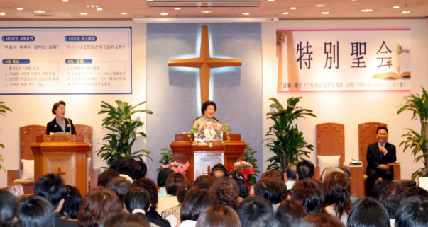 ÇѼ¼´ë ±è¼ºÇý ÃÑÀåÀÌ 18ÀÏ ÀϺ» ¿À»çÄ«¼øº¹À½±³È¸¿¡¼'Çϳª´ÔÀÌ ±â»µÇϽô ¿¸Å'¸¦ ÁÖÁ¦·Î ¸»¾¸À» ÀüÇß´Ù. ¿À»çÄ«¼øº¹À½±³È¸ ±³ÀεéÀÌ ¼³±³Àü ±è¼ºÇý.... ¤Ó¿À»çÄ«=À̼ÒÈç ±âÀÚ 2007-03-18