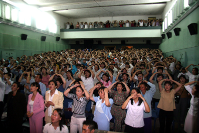 ¡®¸ù°ñÃß¼ö 2004¡¯ ¼ºÈ¸ ÈÄ ³î¶ó¿î º¯È ÁÙÀ̾ȸ 300¿©°³, ±âµ¶±³ÀÎ 4¸¸5õ¸íÀ¸·Î ¼ºÀå Á¶¿ë±â ¸ñ»çÀÇ ¡®¸ù°ñÃß¼ö 2004¡¯¼ºÈ¸´Â ¸ù°ñÀ» ±Þ¼ÓÇÏ°Ô º¯È½ÃÄ×´Ù. ÇöÁö º¹À½.... ¤Ó¿ï¶õ¹ÙŸ¸£=À̼ÒÈç ±âÀÚ 2005-08-12