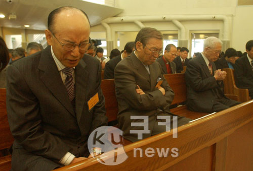 Çѱ¹±³È¸ÀÇ ÃÖ°í ¿ø·ÎÀÎ Á¶¿ë±â °¿ø¿ë ±èâÀÎ ¸ñ»ç°¡ ÇÑÀÚ¸®¿¡ ¸ð¿© ÀڽŵéÀÇ À߸øÀ» °ø°³ÀûÀ¸·Î °í¹éÇϰí Çϳª´Ô ¾Õ¿¡ ȸ°³Çß´Ù. 8ÀÏ ¿ÀÀü7½Ã ¼¿ï µµ°îµ¿ °º¯±³È¸¿¡ ¸ðÀÎ 3ÀÎÀÇ ¸ñ»ç.... ¤Ó2005-04-08