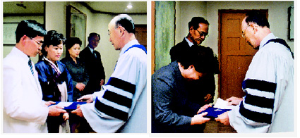 Áö³ 24ÀÏ ´çȸÀå Á¶¿ë±â ¸ñ»ç´Â ³²³à¼±±³È¸ ¿ì¼öºÀ»çÀÚ·Î »ÌÈù ±è¿ø¼· ¾È¼öÁý»ç(³²¼±±³È¸ Àüµµ½Ç 9½Ç Â÷Àå, ¿ÜÂÊ)¿Í ÀÌÈñ¼ø ±Ç»ç(¿©¼±±³È¸ Àüµµ½ÇÀå, ¿À¸¥ÂÊ)¿¡°Ô °¢°¢ ǥâÀåÀ» ¼ö¿©.... ¤Ó2003-09-27
