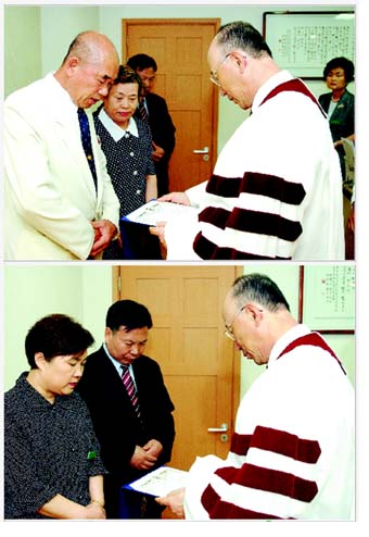 Å뿪½ÇÀå ÀÓ¸íÀåµµ ÇÔ²² Àü´Þ 10¿© ³âÀÌ ³Ñ´Â ¼¼¿ùµ¿¾È ¿¹¹è Å뿪À» ¸Ã¾Æ¿Â ±è±¤¼ö Àå·Î(°¡¿îµ¥), ±èÅ¿ø Àå·Î(¿À¸¥ÂÊ)°¡ Áö³ 4¿ù ºÀ»çȰµ¿À» ¸¶°¨Çϰí 23ÀÏ ´çȸÀå Á¶¿ë±â ¸ñ»ç.... ¤Ó2003-07-26