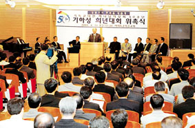 ÃÑÀç Á¶¿ë±â ¸ñ»ç ¹× ÀÓ¿øÁø ±¸¼º Áö³ 26ÀÏ, ±¹³»Á¶Á÷ À§ÃË½Ä °ÅÇà ½ÉÆ÷Áö¿ò ¡¤ ±â³ä°ü °Ç¸³ µî Áغñ ±âµ¶±³´ëÇÑÇϳª´ÔÀǼºÈ¸(ÃÑȸÀå ÀÌÀçâ ¸ñ»ç, ÀÌÇÏ ±âÇÏ.... ¤Ó2002-04-29