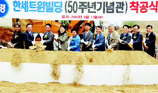ÇѼ¼´ëÇб³´Â Áö³ 11ÀÏ ¡®ÇѼ¼Æ®À©ºôµù(50Áֳ⠱â³ä°ü) Âø°ø½Ä¡¯À» °¡Á³´Ù. ¿À´Â 2004³â 8¿ù ¿Ï°ø ¿¹Á¤ÀÎ ÇѼ¼Æ®À©ºôµùÀº Áö»ó 7Ãþ °Ç¹°·Î ÃÑÀå½Ç, ±³¼ö¿¬±¸½Ç, ÇàÁ¤°ü·Ã½Ã¼³, ½ºÆ©µð¿À, ´ëÇü¼¼¹Ì³ª½Ç, »ó¼³Àü½ÃÀå, ÄÄÇ»Åͱ׷¡ÇÈ½Ç µîÀÌ µé¾î¼±´Ù.