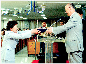Áö³ 16ÀÏ ´çȸÀå Á¶¿ë±â ¸ñ»ç´Â ¼ö¿ä±³Á÷¿ø¿¹¹è¿¡¼ Á¤³âÅðÀÓÇÏ´Â ÀÌ¿µÀÚ ¸ñ»ç¿¡°Ô °ø·ÎÆÐ¸¦ ¼ö¿©Çß´Ù. ÀÌ¿µÀÚ ¸ñ»ç´Â ±×µ¿¾È ¿µ»ê±³È¸ »ó´ã½Ç¿¡¼ »ç¿ªÇÏ¸ç ¼ºµµµéÀÇ ½Å¾Ó¼ºÀå¿¡ µµ¿òÀ» ÁÖ¾ú´Ù.