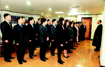´çȸÀå Á¶¿ë±â ¸ñ»ç´Â Áö³ 9ÀÏ 2004³â ½Å±Ô±³¿ªÀÚ 30¸íÀÇ Àλ縦 ¹Þ°í ¼¶±èÀÇ º»À» º¸ÀÌ´Â ÁÖÀÇ Á¾ÀÌ µÉ °ÍÀ» ´çºÎÇß´Ù. Á¶ ¸ñ»ç´Â À̵éÀ» °Ý·ÁÇÏ¸ç ¡°¼øº¹À½ÀÇ Á¦ÀÚ°¡ µÇ¾úÀ¸´Ï ¿ÀÁߺ¹À½°ú »ïÁßÃູÀÇ ¸Þ½ÃÁö·Î Çѱ¹Àº ¹°·Ð Àü¼¼°è¿¡ º¹À½À» ÀüÇÏ´Â ÀϲÛÀÌ µÇ¶ó¡±°í ÀüÇß´Ù.