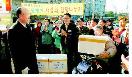 ¾ÆÄ§ºÎÅÍ ºñ°¡ ³»¸®´Â Ãß¿î ³¯À̾ú´Ù. ¸Å¼¿î ¹Ù¶÷µµ ¾Æ¶û°÷¾ø´Â µí ºÀ»çÀÚµéÀº ±èÀåÀ» ¹Þ°í¼ ±â»µÇÒ ÀÌ¿ôµé »ý°¢¿¡ ¼Õ³î¸²ÀÌ ºÐÁÖÇß´Ù. Áö³ 11¿ù 17ÀϺÎÅÍ ³ªÈê°£ 500¿© ¸íÀÇ ºÀ»çÀÚµéÀÇ Çå½ÅÀ¸·Î ¸¸µé¾îÁø ±èÀåÀº 15§¸ ¹Ú½º 800°³ ºÐ·®. ¸ðµÎ 800¼¼´ë¿¡°Ô ³ª´²ÁÙ ±èÀåÀ¸·Î µé¾î°£ Àç·á¸¸µµ ¹èÃß 6000Æ÷±â¿Í ¹«¿ì 6000°³, °íÃß 600±Ù, Á£°¥ 40ÅëÀ̳ª ¼Ò¿äµÆ´Ù.