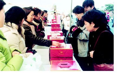 ¼±ÇÑ»ç¶÷µé ±×·ìȨ µ½±â ÄÉÀÌÅ© ÆÇ¸Å 21, 24, 25ÀÏ ´ë¼ºÀü ÁÖº¯ Çà»çÀå ¼ ¡°ÇູÇÑ ¾î¸°ÀÌ, ÇູÇÑ Å©¸®½º¸¶½º¡± »ç´Ü¹ýÀÎ ¼±ÇÑ»ç¶÷µéÀº ¿¹¼ö´ÔÀÌ Åº»ýÇϽŠũ¸®½º¸¶½º¸¦ ¸Â¾Æ ±×·ìȨ µ½±â Çà»ç¸¦ ÆîÄ£´Ù. ±×·ìȨ ¾î¸°À̵鿡°Ô µû¶æÇÑ °Ü¿ïÀ» ¼±»çÇϱâ À§ÇÑ ¡®»ç¶ûÀÇ ¼ºÅº ÄÉÀÌÅ© ³ª´©±â¡¯ Çà»ç°¡ ¹Ù·Î ±×°Í. Å©¶ó¿îº£ÀÌÄ¿¸® ÇùÂùÀ¸·Î ÁøÇàµÇ´Â À̹ø Çà»ç´Â ´ë¼ºÀü ÁÖº¯ Çà»çÀå¿¡¼ ¿À´Ã(21ÀÏ)°ú 24,25ÀÏ 3Àϰ£ ¿¸°´Ù. ¼±ÇÑ»ç¶÷µé ÇÑ °ü°èÀÚ´Â ¡°¼ºµµµéÀÌ ÄÉÀÌÅ©¸¦ ±¸ÀÔÇÒ ¶§¸¶´Ù ±×·ìȨ ¾î¸°À̵éÀº ¿Ã °Ü¿ï ±× ¾î´À ¶§º¸´Ù ÈÆÈÆÇÑ »ýȰÀ» º¸³¾ ¼ö ÀÖ´Ù¡±¸ç ¡°À̹ø Çà»ç¿¡ µ¿ÂüÇØ ±×·ìȨ¿¡´Â ÈÄ¿øÀ», ¹ÏÁö ¾Ê´Â ÀÌ¿ô¿¡°Ô´Â ¼ºÅºÀý ÃàÇÏÀÇ Àǹ̷ΠÄÉÀÌÅ©¸¦ ³ª´²ÁØ´Ù¸é º¹À½À» ÀüÇÒ ¼ö ÀÖ´Â ÁÁÀº ±âȸ°¡ µÉ °Í¡±À̶ó°í ÀüÇß´Ù. À̹ø Çà»ç¿¡¼ ÆÇ¸ÅµÇ´Â ÄÉÀÌÅ©´Â 1¸¸2000¿ø »ýÅ©¸² ÄÉÀÌÅ©¿Í 1¸¸5000¿ø ¹Ù³ª³ª »ýÅ©¸² ÄÉÀÌÅ© µÎ Á¾·ùÀÌ´Ù. Áö³ 2000³âÀ» ½ÃÀÛÀ¸·Î ¿ÃÇØ 4¹øÂ° »ç¶ûÀÇ ÄÉÀÌÅ© ³ª´©±â Çà»ç¸¦ °³ÃÖÇÏ´Â ¼±ÇÑ»ç¶÷µéÀº ¼øº¹À½ÀÇ ¼ºµµµéÀÌ ¼±ÇÑ ÀÌ¿ôµÇ¾î ¾ÆÀ̵éÀÇ ÈÆÈÆÇÑ ÈÄ¿øÀÚ·Î ³ª¼ÁÖ±æ ±â´ëÇϰí ÀÖ´Ù.