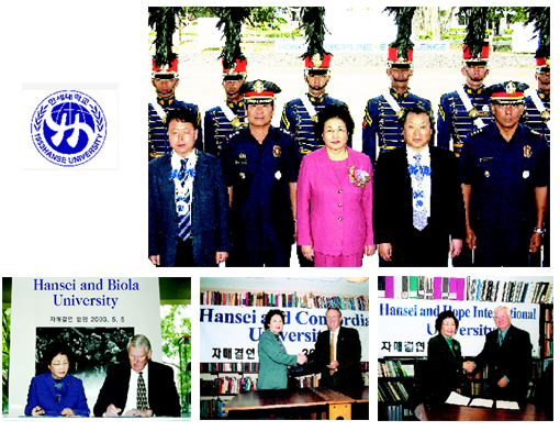 ÇѼ¼´ëÇб³ÀÇ ´ë¿Ü ±³·ù´Â ±è¼ºÇý ÃÑÀå ÃëÀÓ ÀÌÈÄ È°¹ßÇÏ°Ô ÃßÁøµÇ¾î ¿Ô´Ù. âÇÐ 50ÁÖ³âÀ» ¸ÂÀ¸¸é¼ Àû±ØÀûÀ¸·Î Á¦½ÃÇÑ ºñÀü,¡®Çѱ¹¿¡¼ ¼¼°è·Î¡¯¶ó´Â Ç¥¾î¿Í À̾îÁø´Ù. ½ÇÁ¦·Î ÇѼ¼´ëÇб³´Â ±¹³»¿Ü ±â°ü°úÀÇ »êÇÐÇù·Â±â°ü ÇùÁ¤À¸·Î Çлýµé¿¡°Ô ´Ù¾çÇÑ ÇýÅÃÀ» ÁÖ°í ÀÖÀ¸¸ç, ±âµ¶±³Àû ÀüÅë°ú Çй®Àû ½Ç·ÂÀ» °®Ãá ±¹¿Ü ¸í¹® ½ÅÇдëÇаúÀÇ ÀڸŰῬÀ¸·Î Çб³ÀÇ À̸§À» ³ô¿©¿Ô´Ù. ½Ç¸®¿Í ÇÔ²² À§»óÀ» ¼¼¿î ÇѼ¼´ëÇб³ÀÇ ¹ß°ÉÀ½Àº ¼¼°è·Î »¸¾î°¡´Â Çѱ¹ÀÇ ´ëÇÐ, ÇѼ¼´ëÇб³ÀÇ ¹àÀº ÀÚÈ»óÀ» º¸¿©ÁØ´Ù.