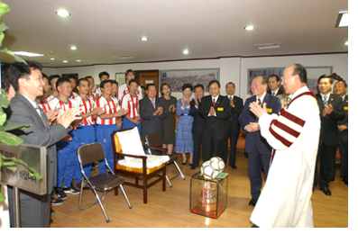 Áö³ 3ÀÏ Á¶¿ë±â ¸ñ»ç´Â ÁÖÀÏ 3ºÎ ¿¹¹è¸¦ ¸¶Ä¡°í (»ç)¼øº¹À½½Ç¾÷Àμ±±³¿¬ÇÕȸ üÀ°¼±±³È¸ ¿£Á©½ºÃ౸´Ü, ÀÓ¿øµé°ú ÇÔ²² ±â³äÃÔ¿µÀ» °¡Á³´Ù. ¿£Á©½ºÃ౸´ÜÀº ²ö±â¿Í ´ÜÇÕÀ¸·Î Áö³´Þ 4ÀÏ ¿¸° <Á¦1ȸ ÇÒ·¼·ç¾ßÄÅ Àü±¹±³È¸´ëÇ× Ã౸´ëȸ>¿¡¼ ¿ì½Â, Àü±¹ÀûÀ¸·Î ¼øº¹À½ÀÇ À§»óÀ» ¶³Ä¡°í µ¹¾Æ¿Ô´Ù. ¡°¿ì¸®±³È¸ ûÀå³âµéÀÌ ´ÜÇÕÇØ Àü±¹ Ã౸´ëȸ¿¡¼ 1µîÇÑ °ÍÀº Å« ÀºÃÑÀÌ´Ù. ´õ¿í ½Ç·ÂÀ» Ű¿ö ¾îµð¼µçÁö ¡®ÇÒ ¼ö ÀÖ´Ù¡¯´Â ¼øº¹À½ÀÇ ¹ÏÀ½À» º¸¿©Áֱ⠹ٶõ´Ù¡±¶ó°í ÀüÇÑ Á¶¿ë±â ¸ñ»ç´Â Ã౸°ø¿¡ ½ÎÀÎÀ» Çϸç Ã౸´Ü¿øµéÀ» °Ý·ÁÇß´Ù.